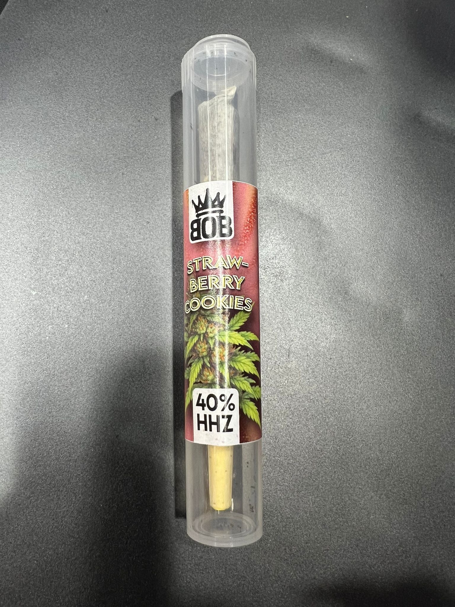 Es handelt sich um vorgedrehte Räucherstäbchen („Prerolled Räucherware“) der Marke BOB HHZ, Sorte „Strawberry Cookies“.