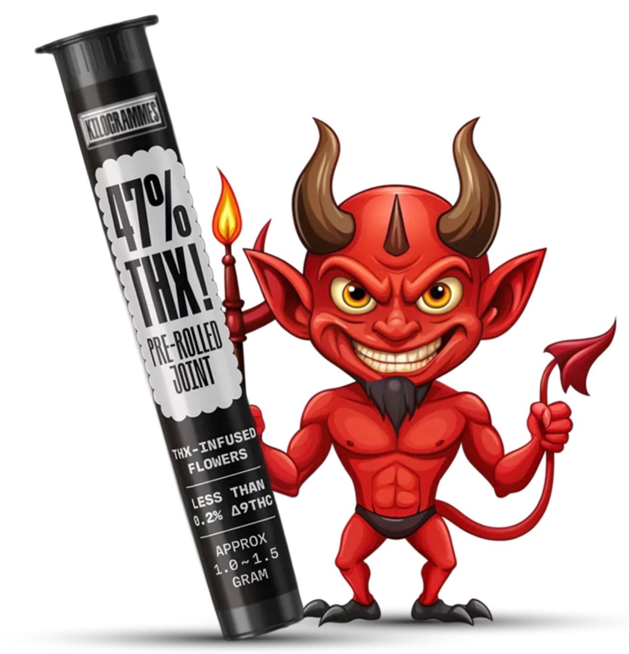 Das Produkt trägt den Namen „47 % THX! Pre-Rolled Joint“ von Kilogrammes.